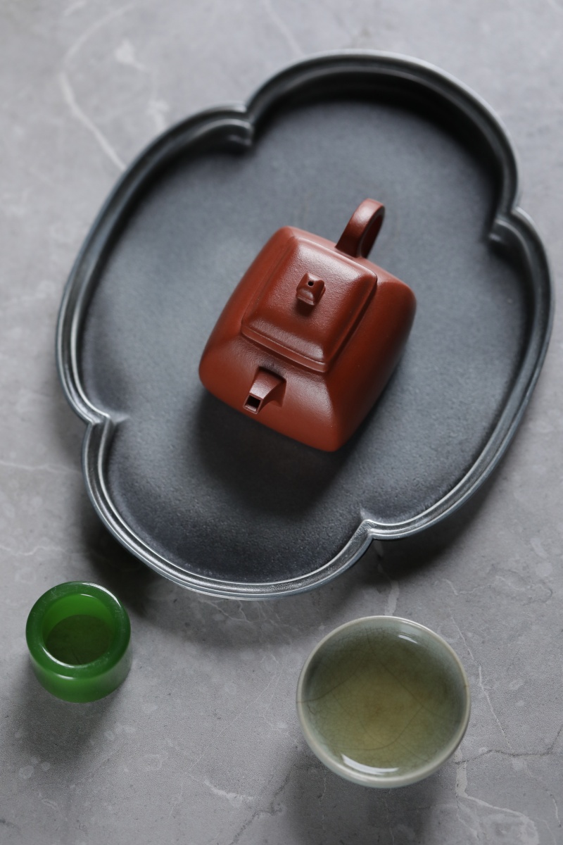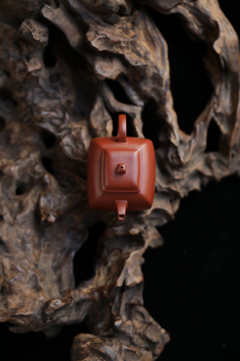 郑荆玉,清初制壶高手,擅制方器。传世之四方坦然壶方圆融容,寓示君子进退有节,处世以方,藏锋不露芒。今摹作分享。此壶型制方正,角钝而匀,于稳健中见大气度。方柄方钮,自然舒畅,四面昂藏。