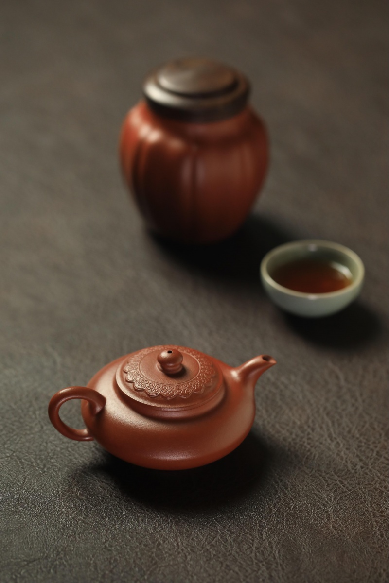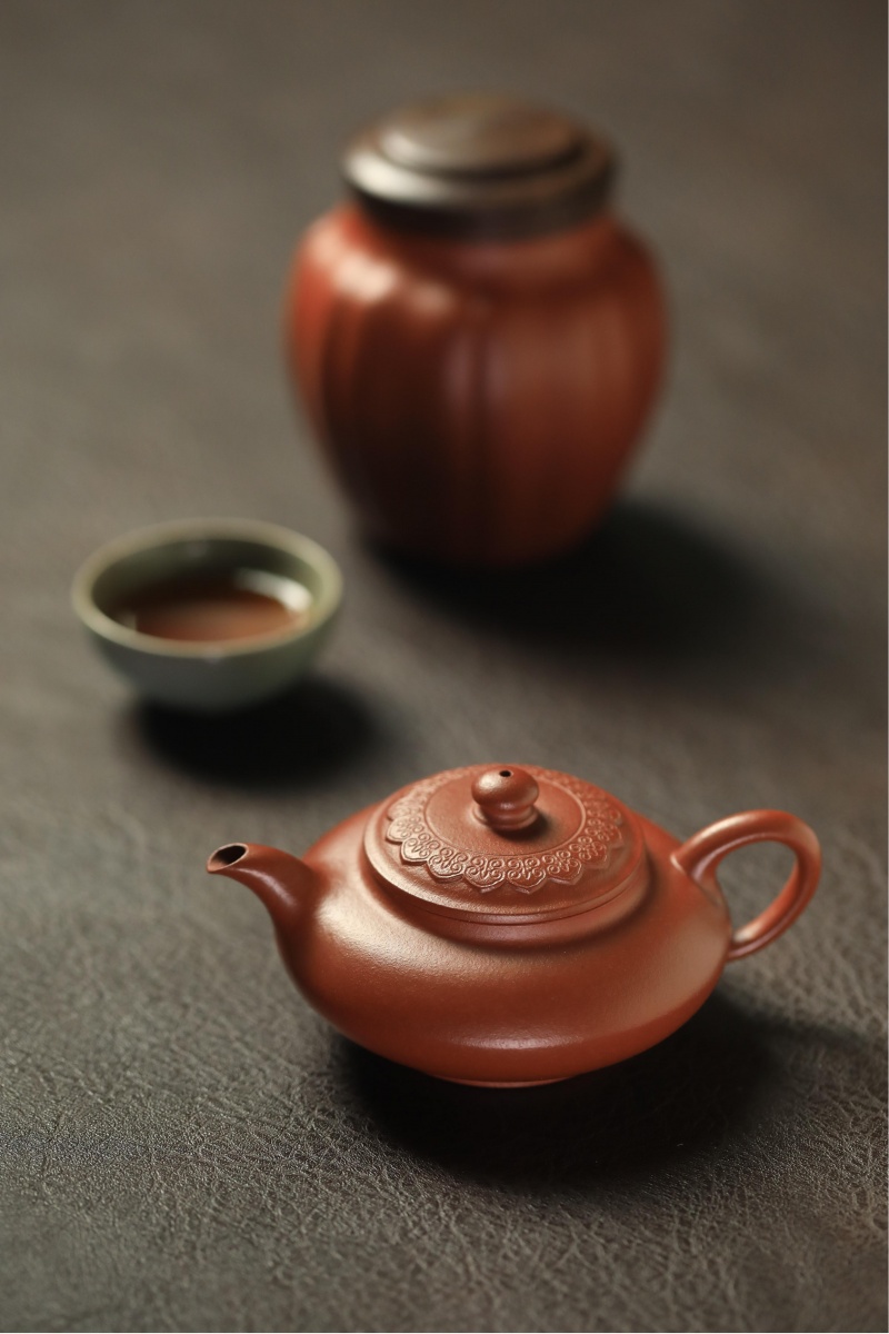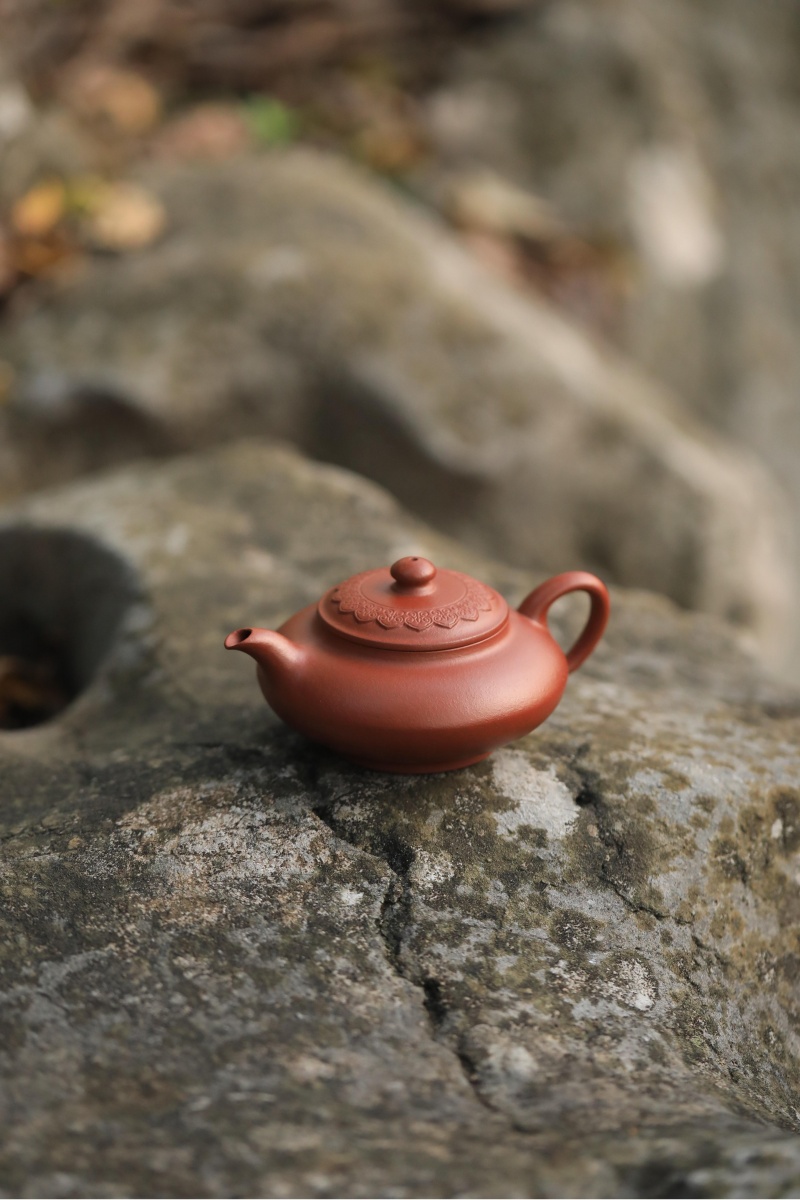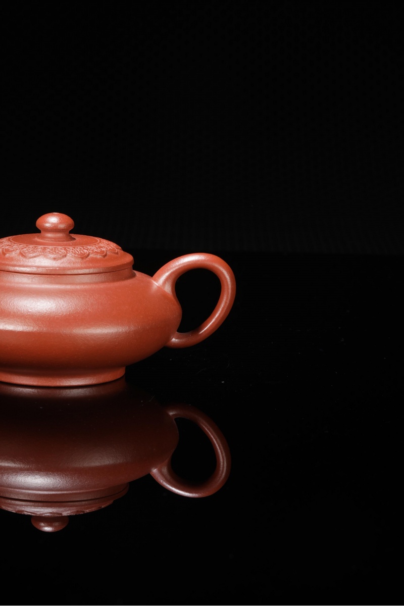 本品摹作昇侯圆壶,现珍藏于鸿禧美术馆,昇侯据资料显示为晚明清初人,其传世作品造型多奇巧精妙而称绝。九瀚承古意,依原型重塑,再续其风华,推出昇侯二式,盖面添设如意盘饰,灵感源自同时期之装饰风格,小巧而层次分明,寓意吉祥如意。壶身扁圆,壶腹线条圆融流畅,壶嘴轻扬,出水既畅且劲,握持间舒适自然,具有经典传统的中式审美。