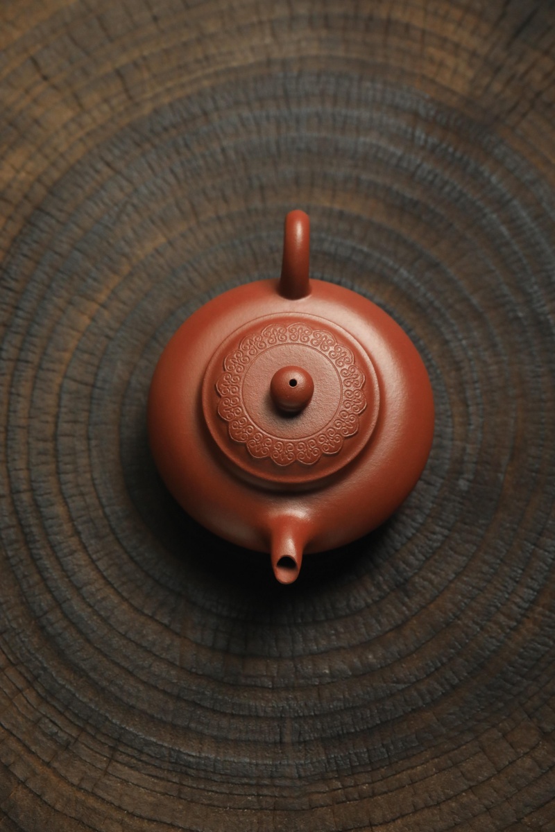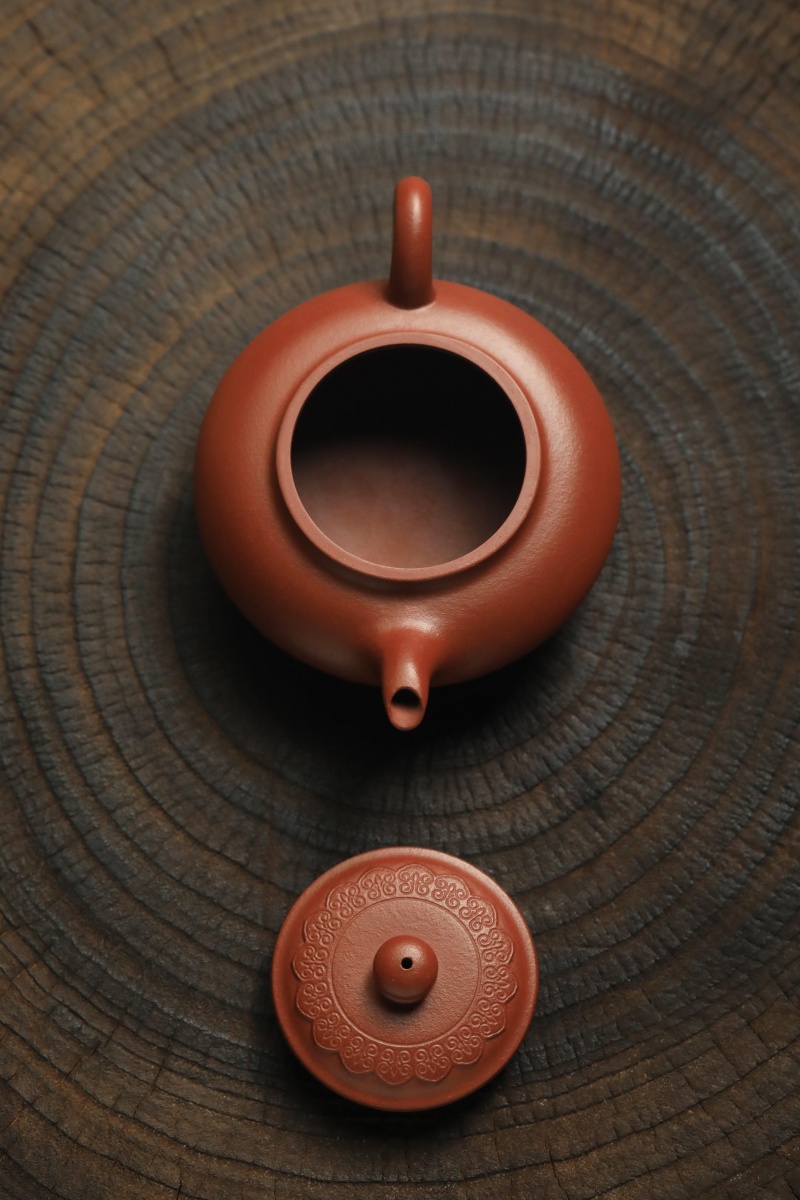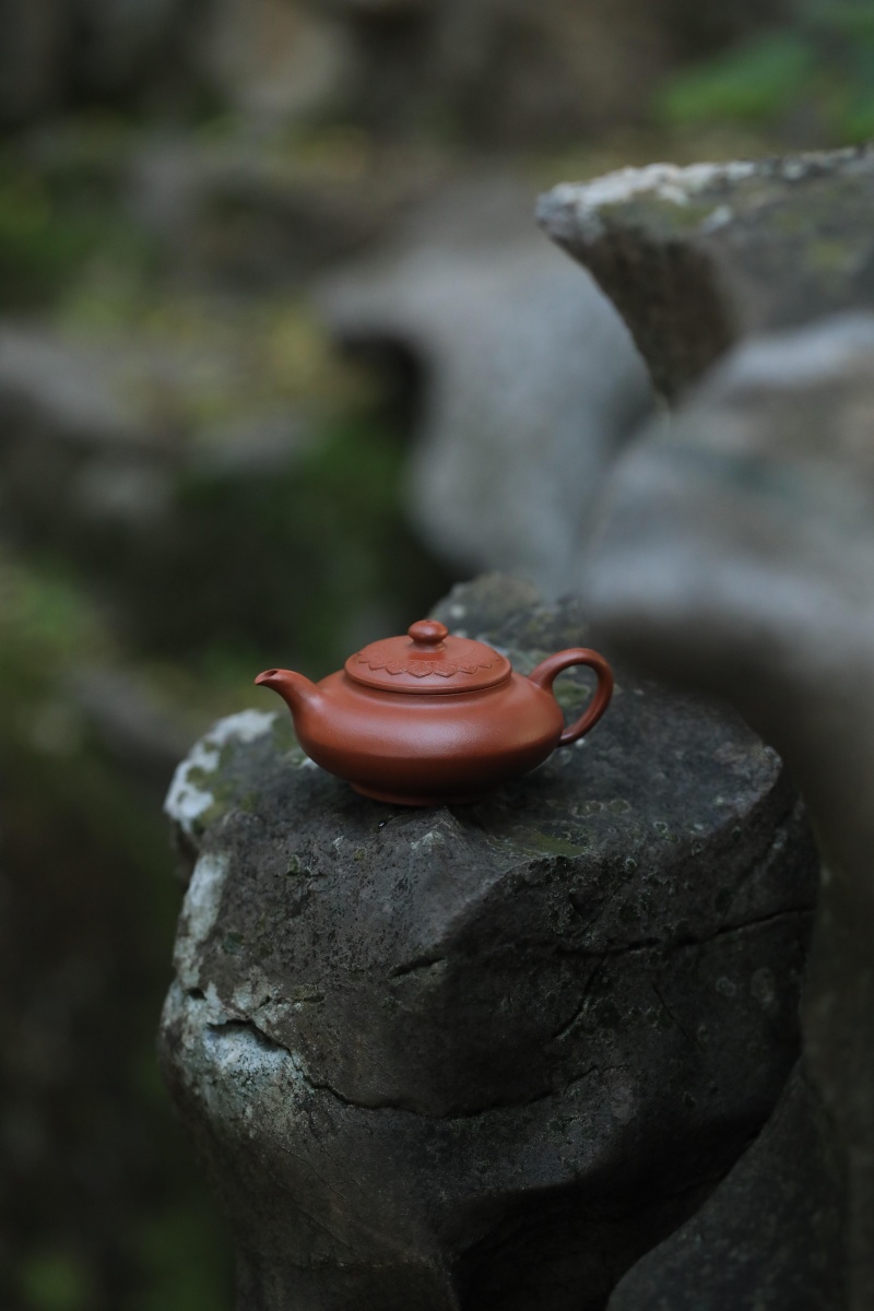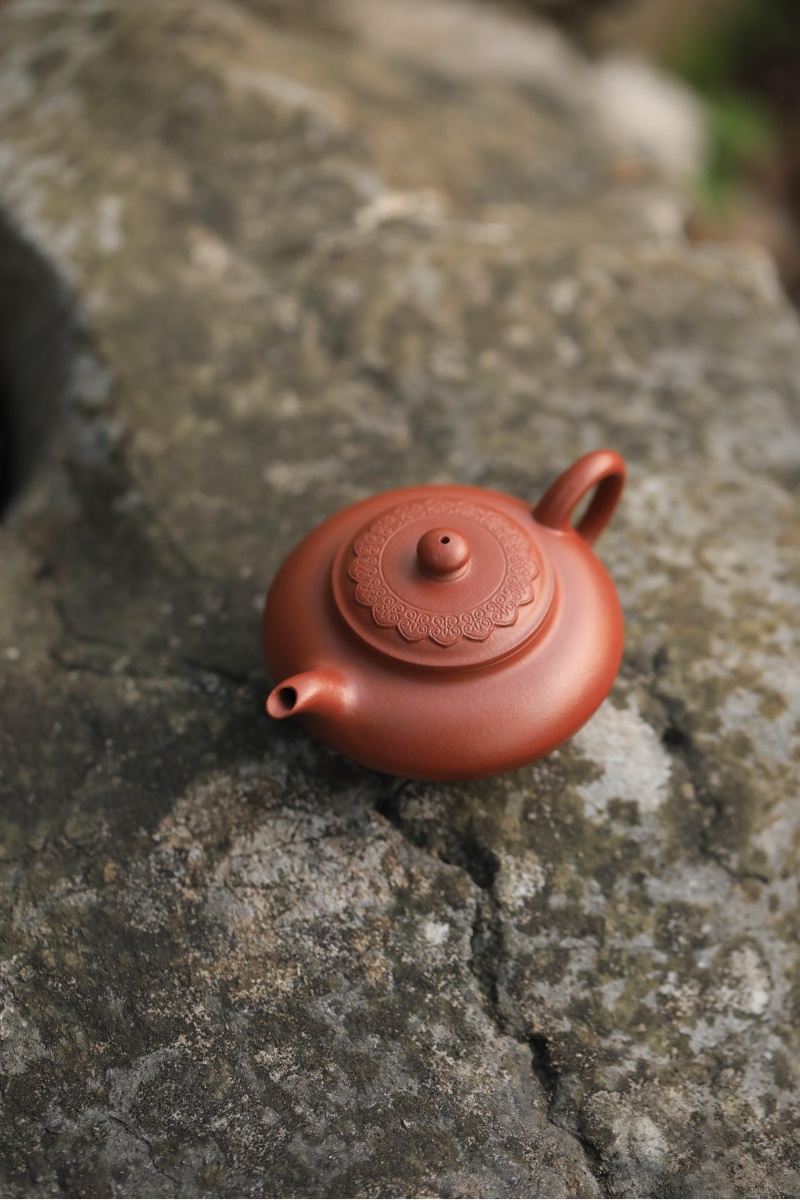 本品摹作昇侯圆壶,现珍藏于鸿禧美术馆,昇侯据资料显示为晚明清初人,其传世作品造型多奇巧精妙而称绝。九瀚承古意,依原型重塑,再续其风华,推出昇侯二式,盖面添设如意盘饰,灵感源自同时期之装饰风格,小巧而层次分明,寓意吉祥如意。壶身扁圆,壶腹线条圆融流畅,壶嘴轻扬,出水既畅且劲,握持间舒适自然,具有经典传统的中式审美。