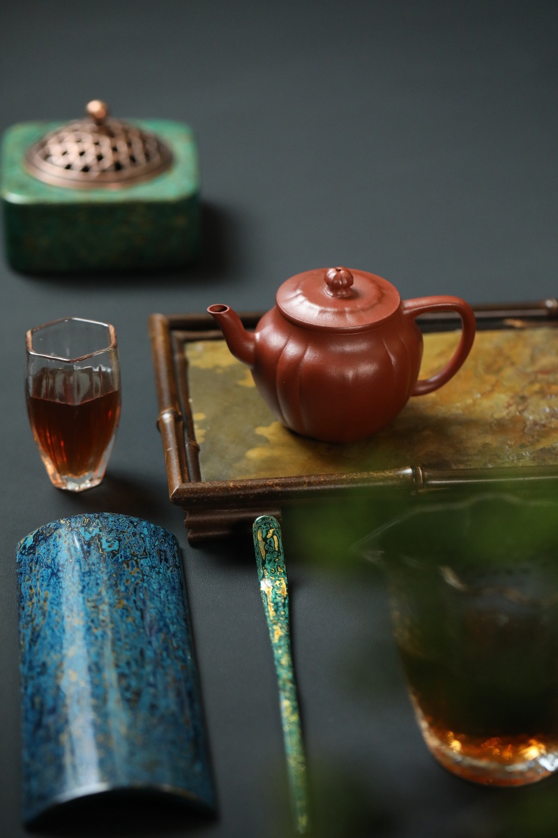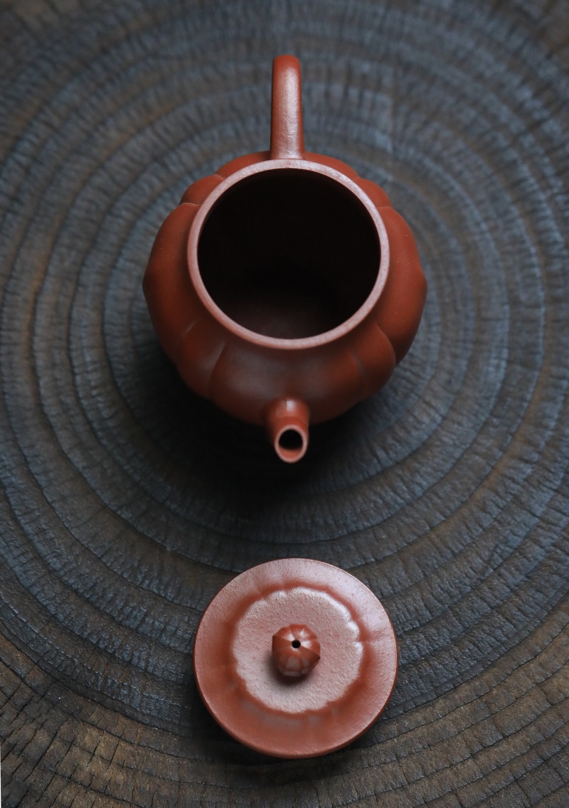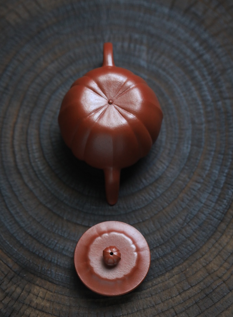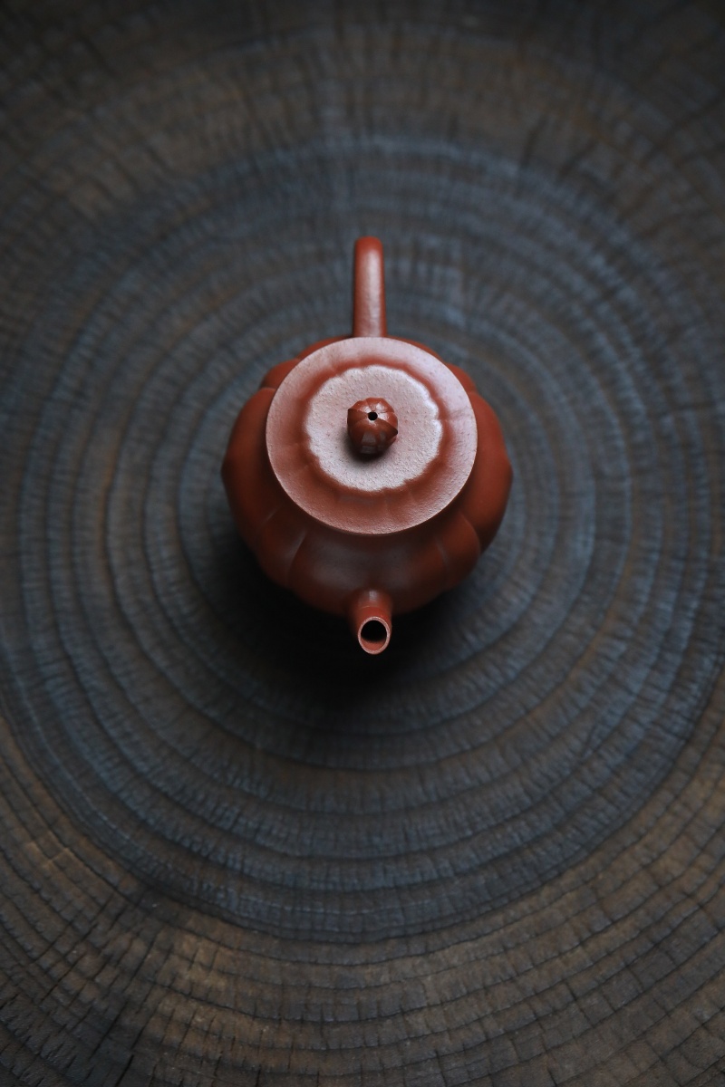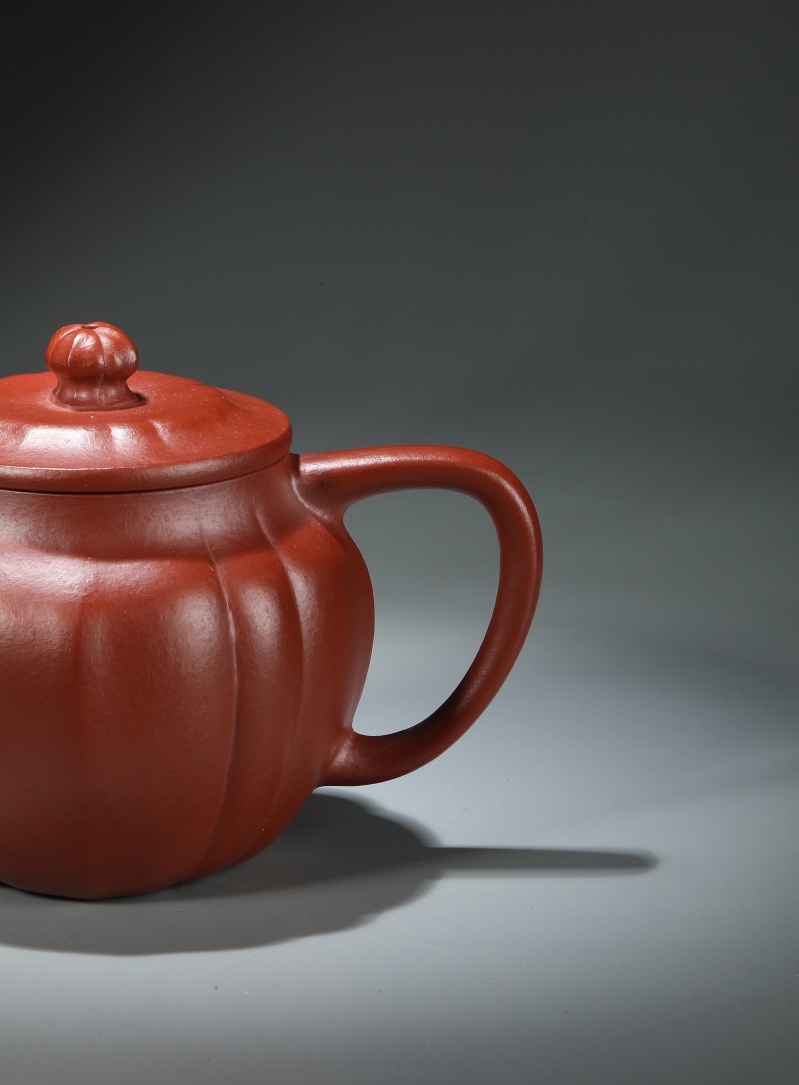 取水仙与菊花清雅高洁之质入器,壶身以筋纹细致呈现花瓣之秀韵,流露恬淡从容之美。水仙之幽静与菊花之清逸,于壶形间交映融合,隐隐透出文人气息与宁静之境。壶把水平舒展,手握之际稳雅自如,映衬茶韵之悠远与清芬。“萃香”之名,蕴含群芳萃聚之妙,香韵含蓄内敛,品茶之间更添意趣深长。正如诗云:“众葩微萃香蕴内,手执芳华韵绵长。”