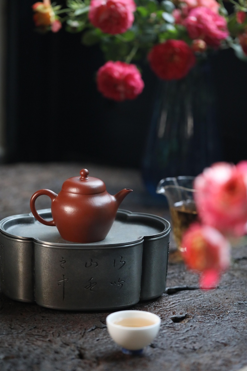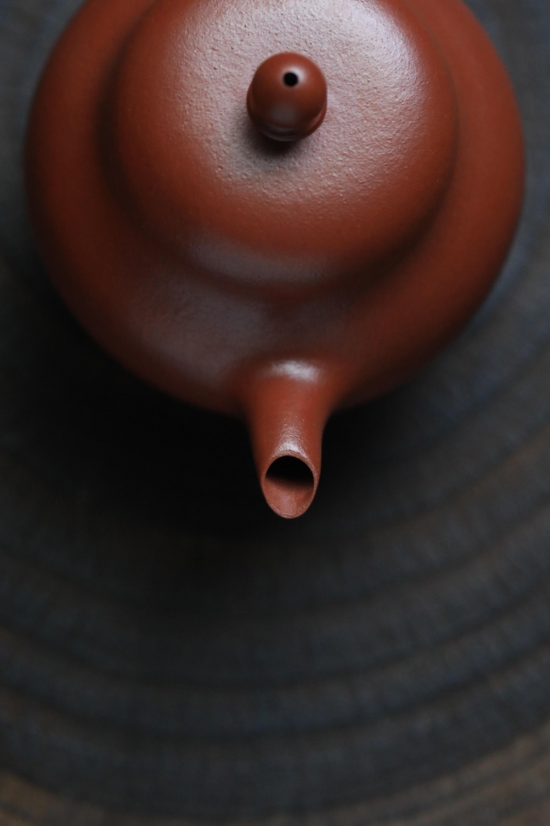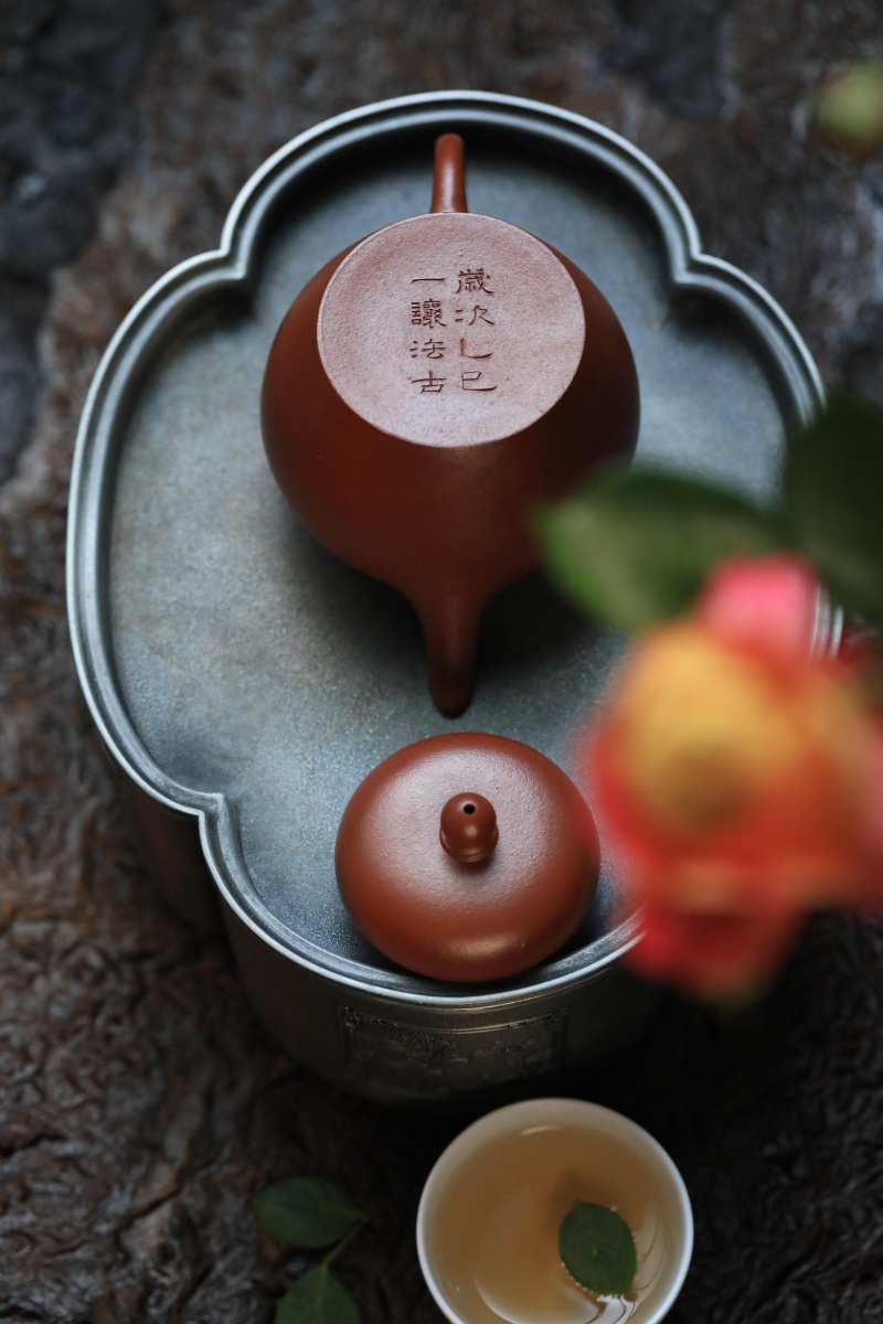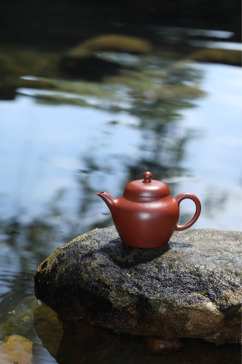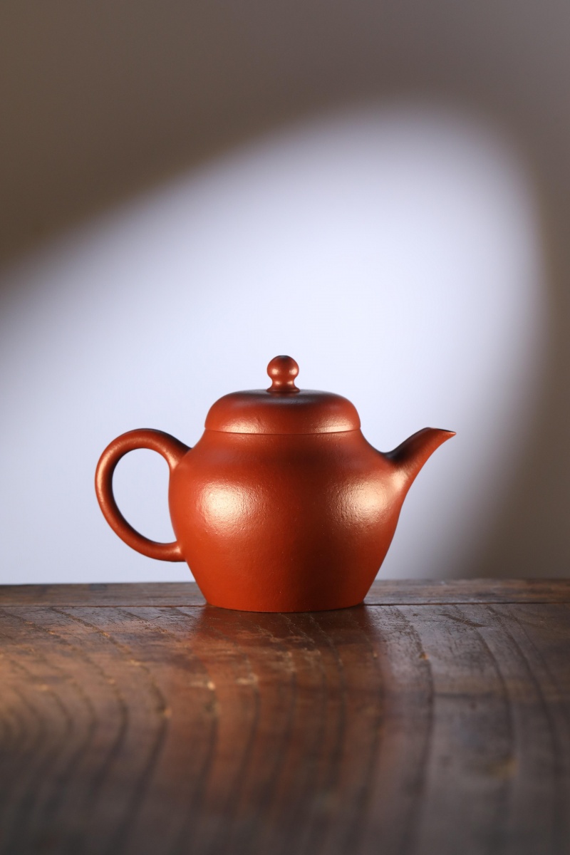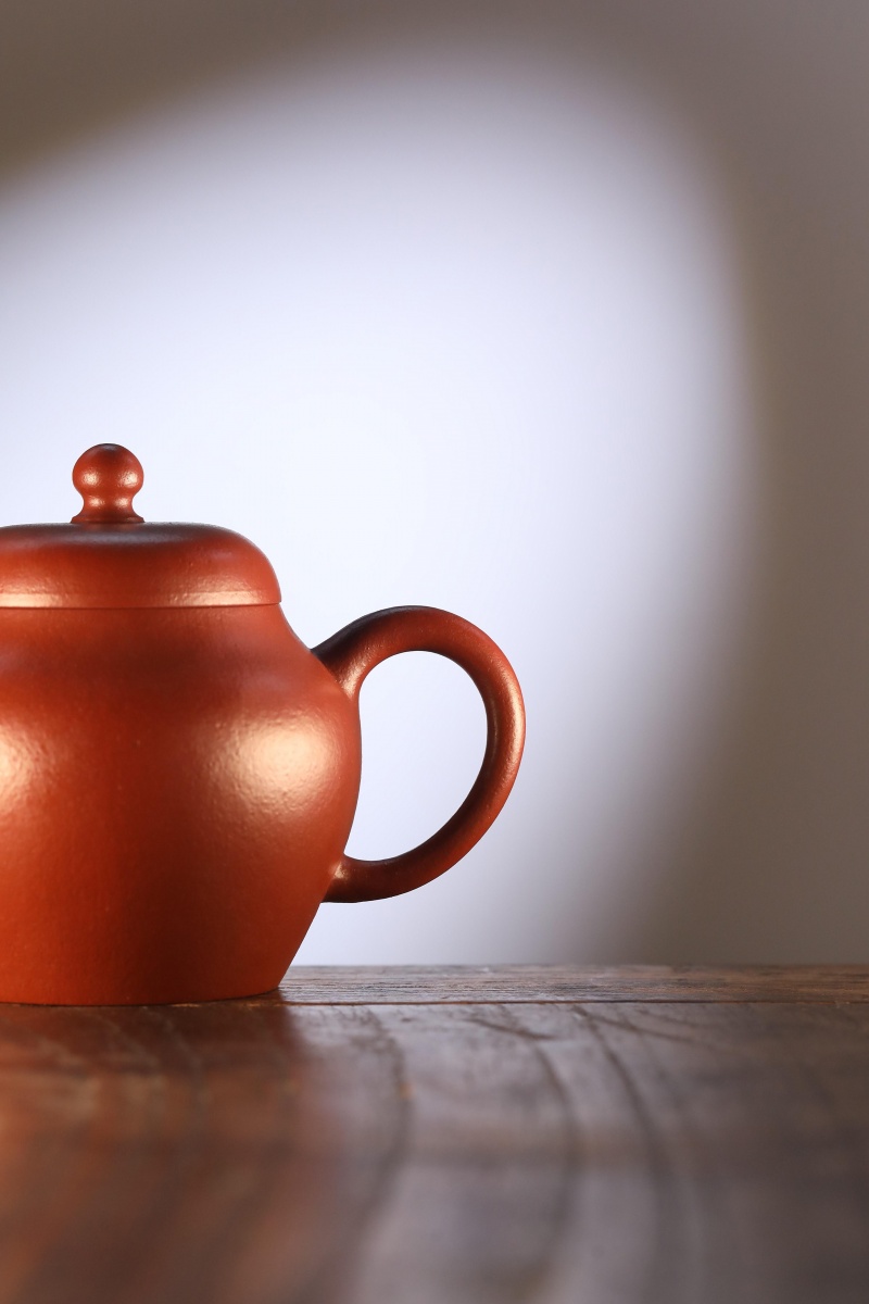 古瓮壶形若古翁,挺拔而舒展,线条流畅自如,简朴素雅却有前人遗风,腹部爆饱满圆润,上下微收,兼具传统与现代之韵,盈盈一立,气韵贯通,此壶阔口投茶便捷,适茶性强,出水流畅,断水利落,尽显古器之含蓄与优雅。