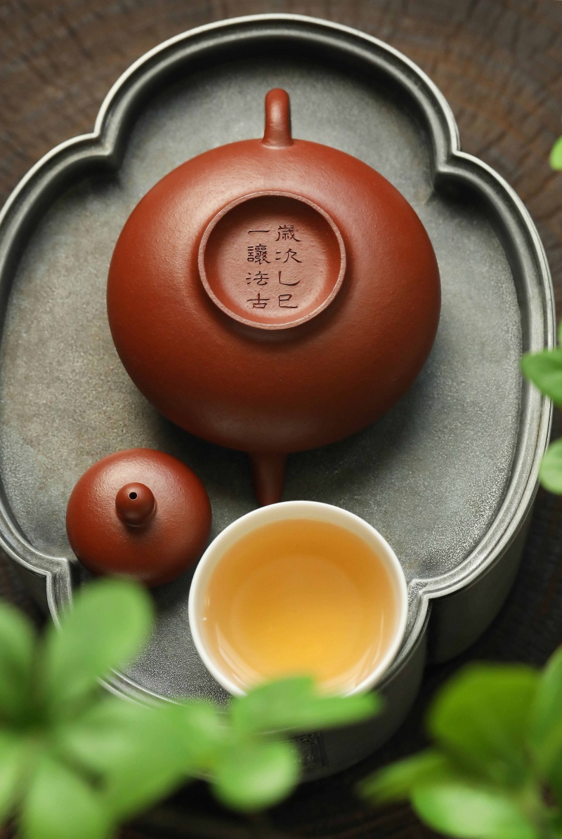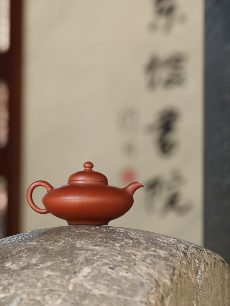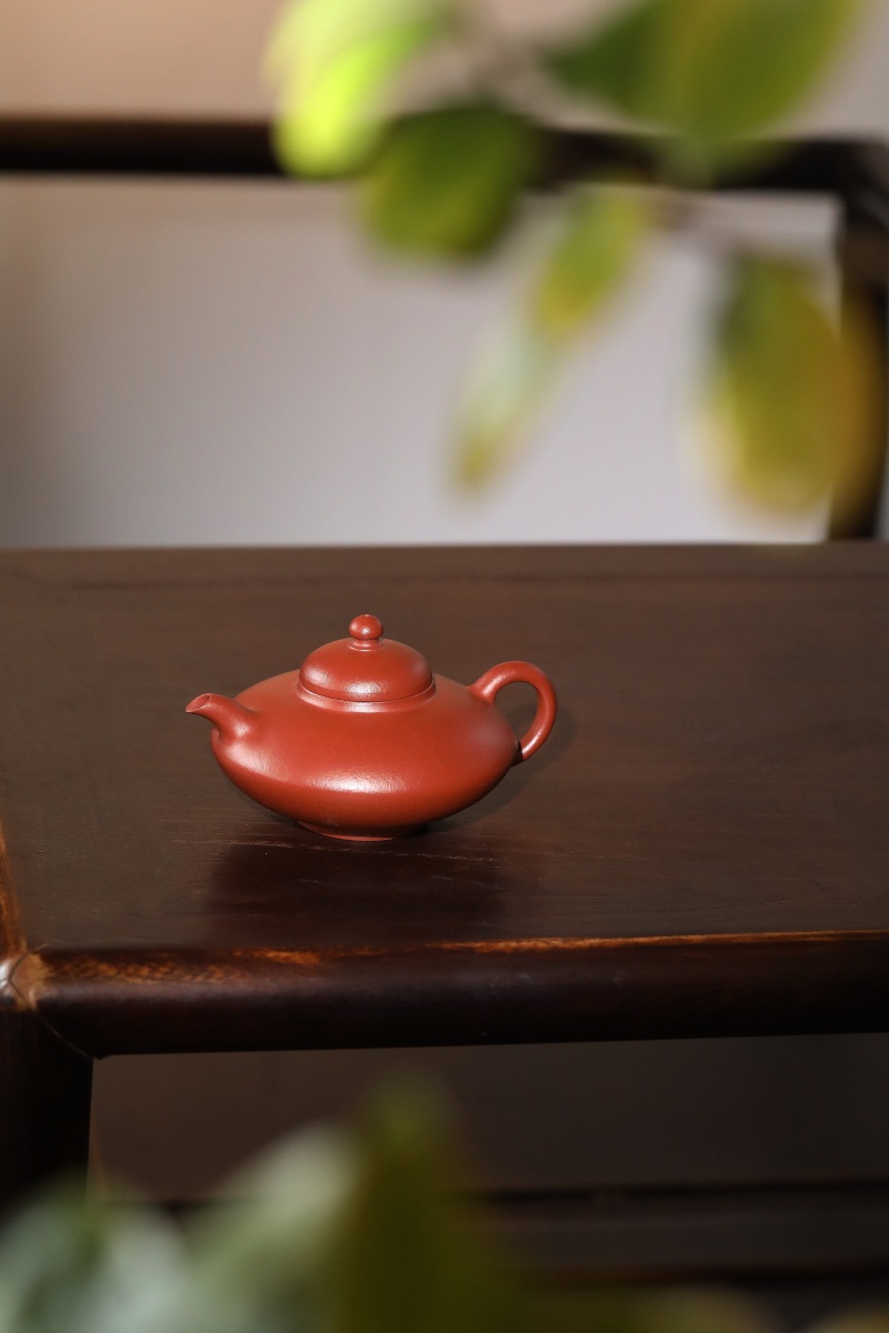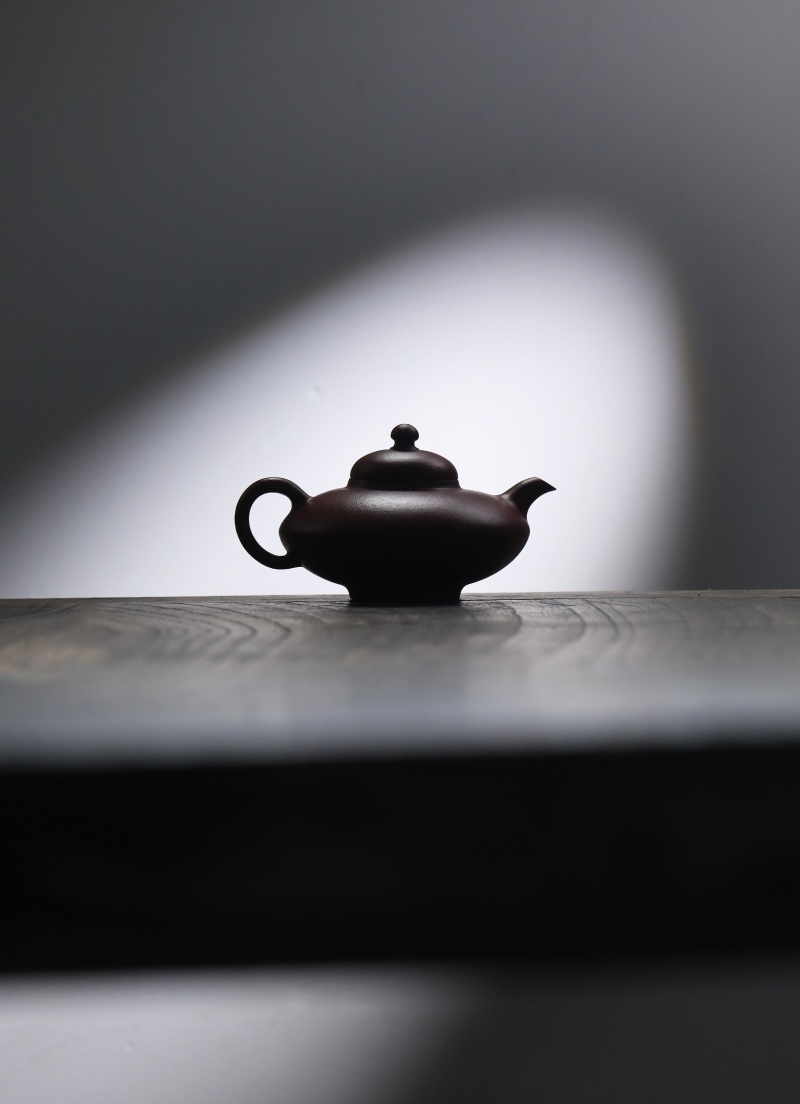 九瀚专注经典传承,摹造朱泥精品。合欢壶取意曼生旧式,于古法中见新意。此款摹古合欢式,全手工制作,器型古韵而又张力,壶身取两半弧线,一俯一仰,阴阳相合,暗合“合欢”之雅意。形制饱满圆融,线条简净大方,无赘饰而气韵自足。壶嘴挺拔,壶把流畅,矜持有度。抚之温润,玩之有味,既得传统壶艺之精神,亦见九瀚摹古不拘、承中求变的匠心独运。