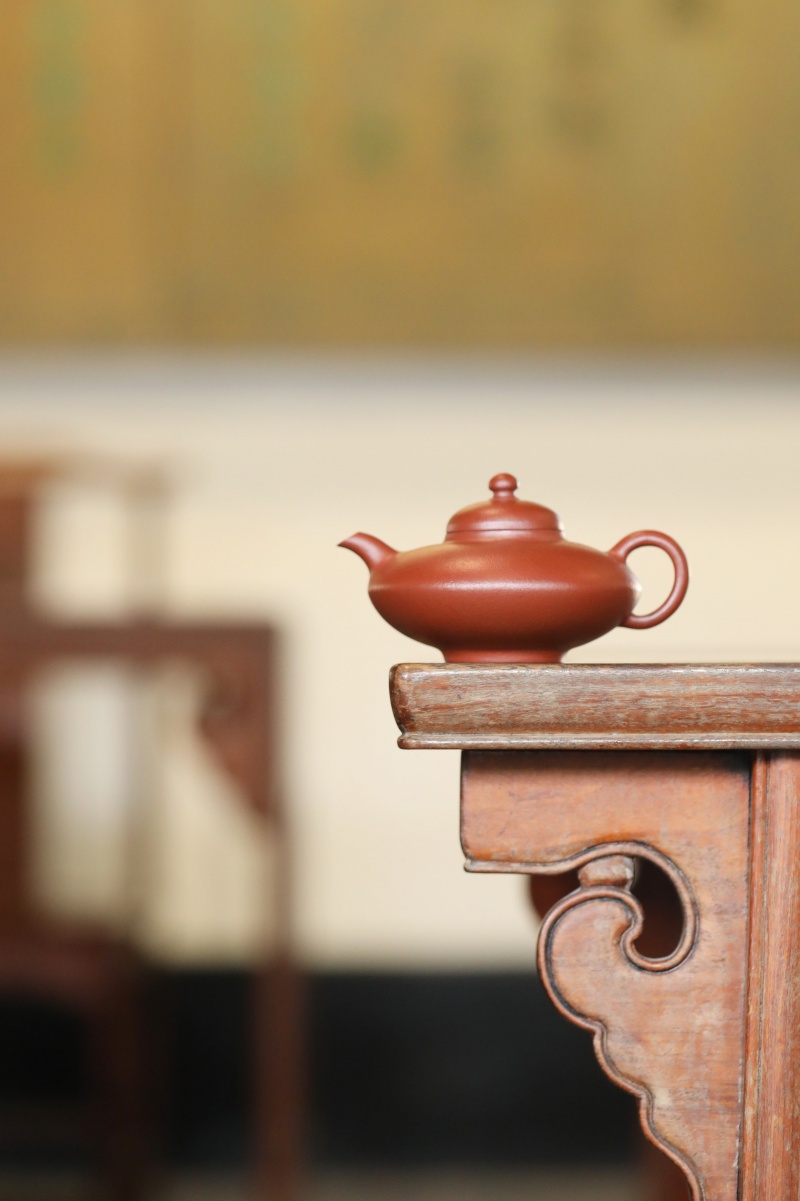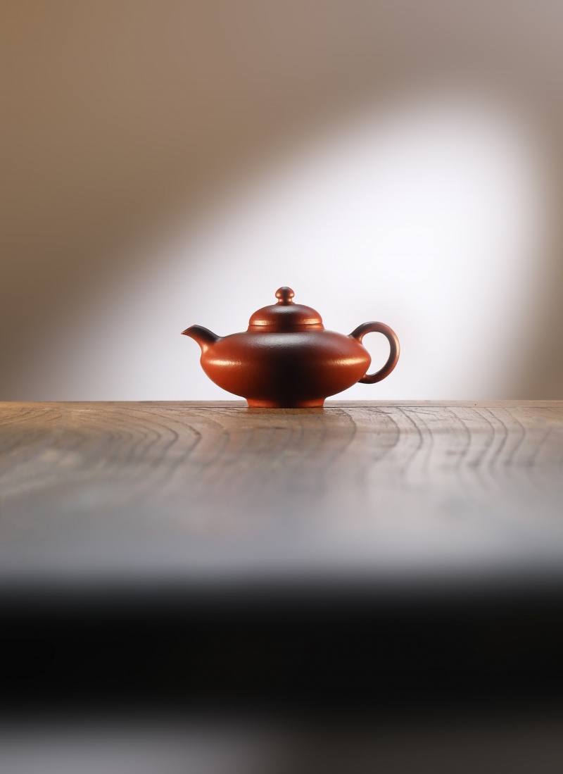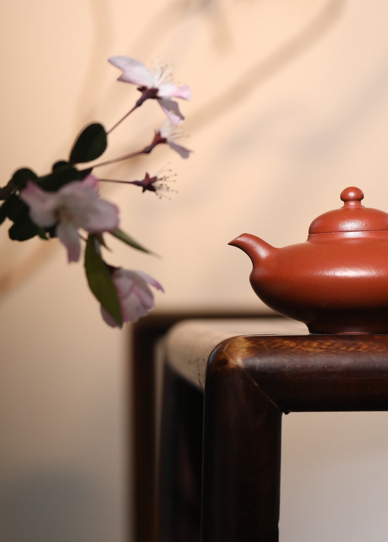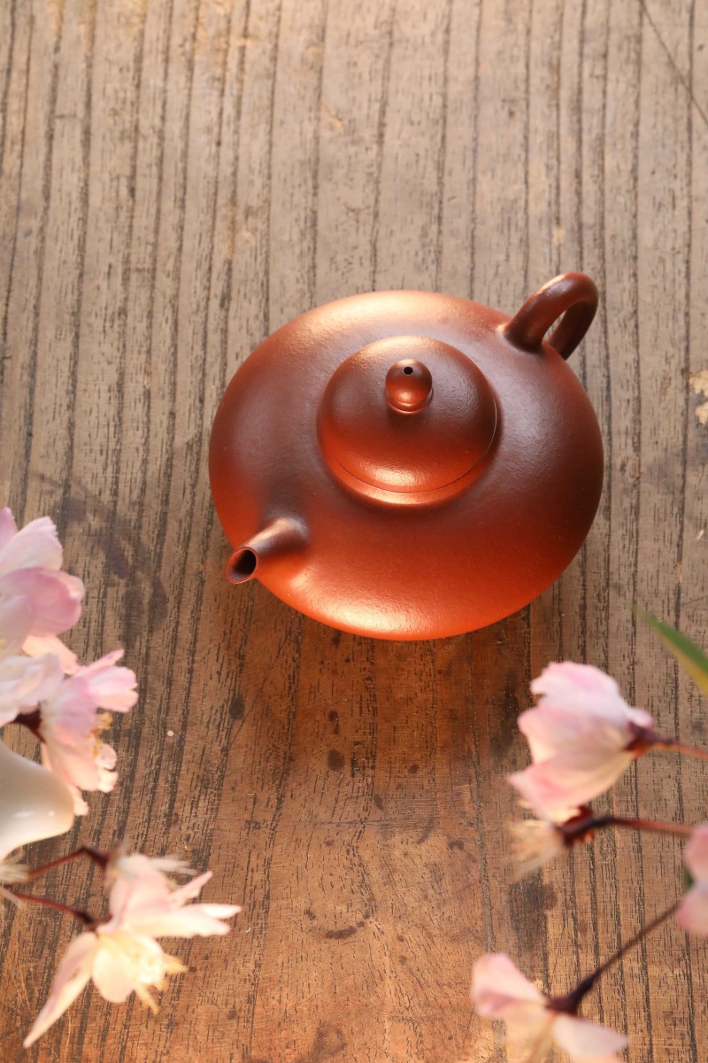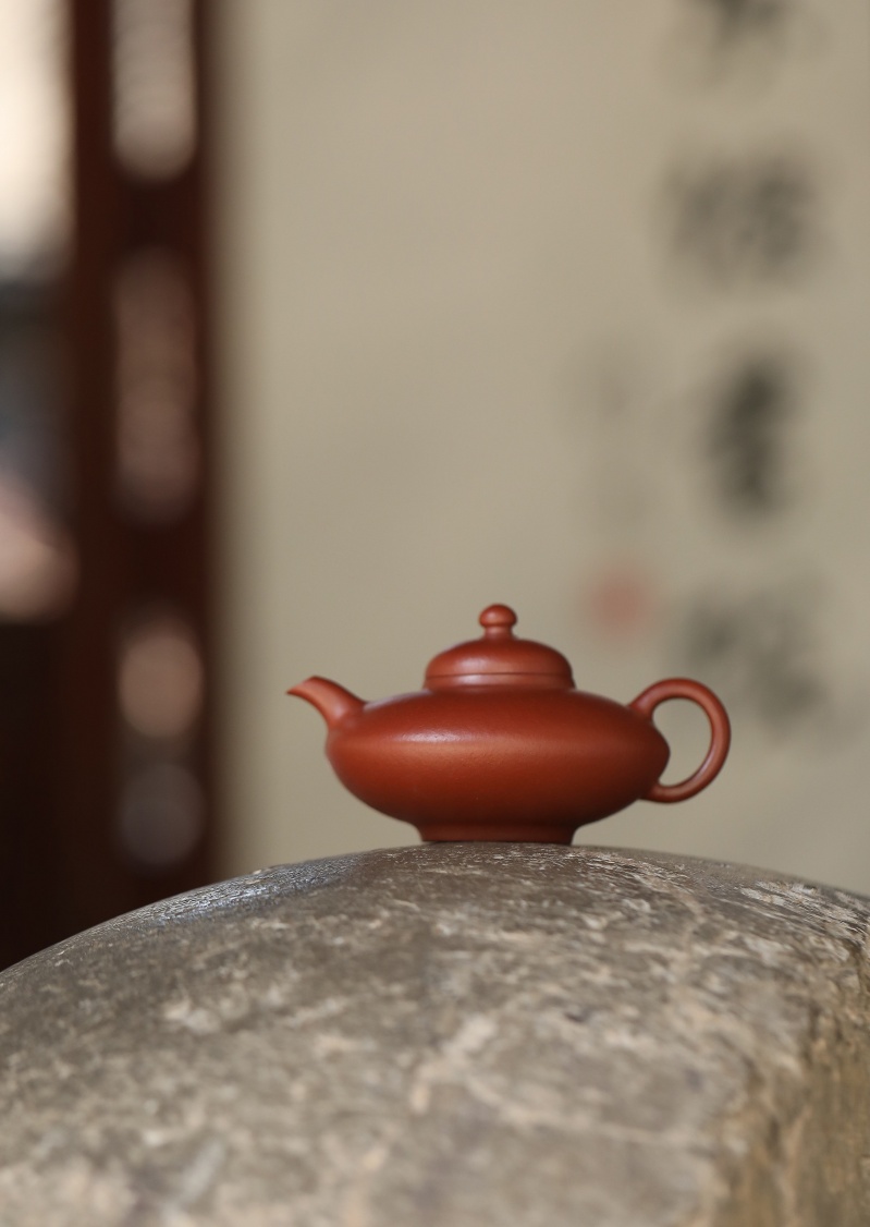九瀚专注经典传承,摹造朱泥精品。合欢壶取意曼生旧式,于古法中见新意。此款摹古合欢式,全手工制作,器型古韵而又张力,壶身取两半弧线,一俯一仰,阴阳相合,暗合“合欢”之雅意。形制饱满圆融,线条简净大方,无赘饰而气韵自足。壶嘴挺拔,壶把流畅,矜持有度。抚之温润,玩之有味,既得传统壶艺之精神,亦见九瀚摹古不拘、承中求变的匠心独运。