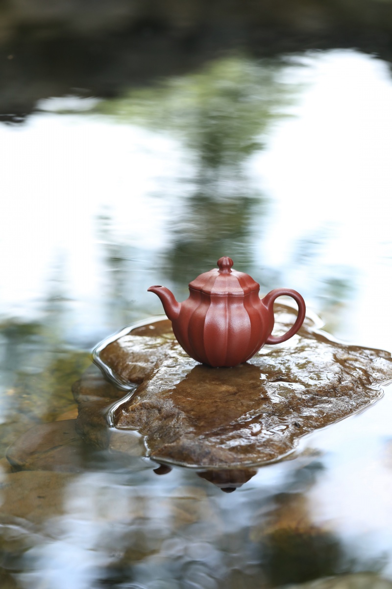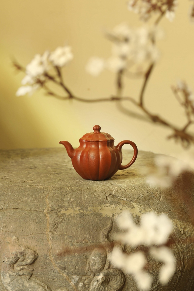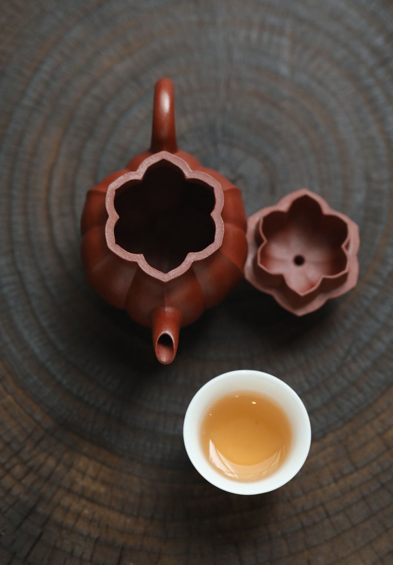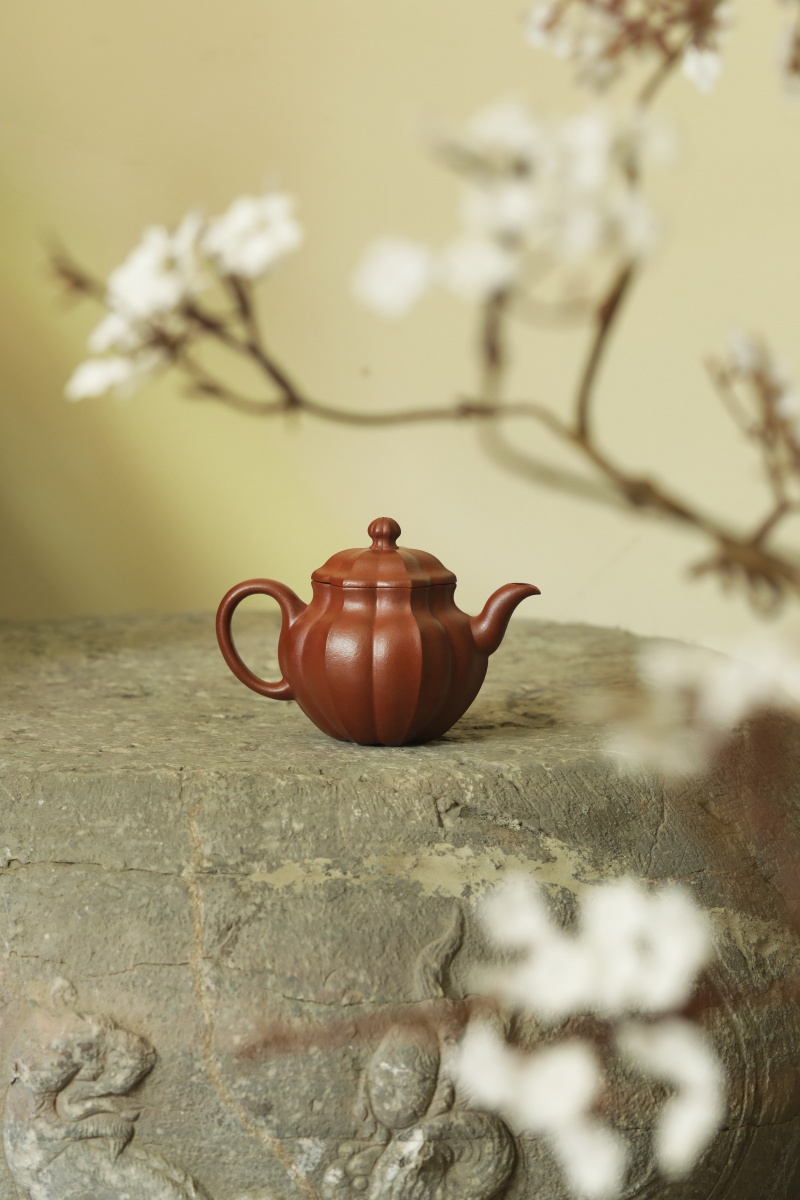 通体呈水仙瓣式,将筋纹与块面巧妙结合,生动呈现出水仙花挺拔且富有生机的姿态。花瓣勾勒细腻,筋纹阴阳交错。整体秀美非凡,柔美中棱角分明,又不失圆润流畅。流把设计纤细灵动、一气贯通,尽显干净利落,拙朴里暗藏巧思。其出水流畅,特为事茶断水收水更佳。