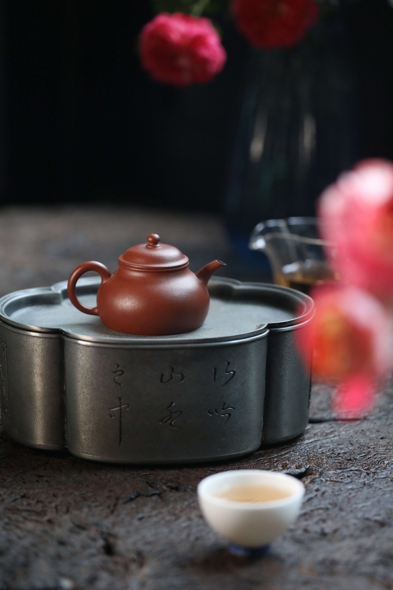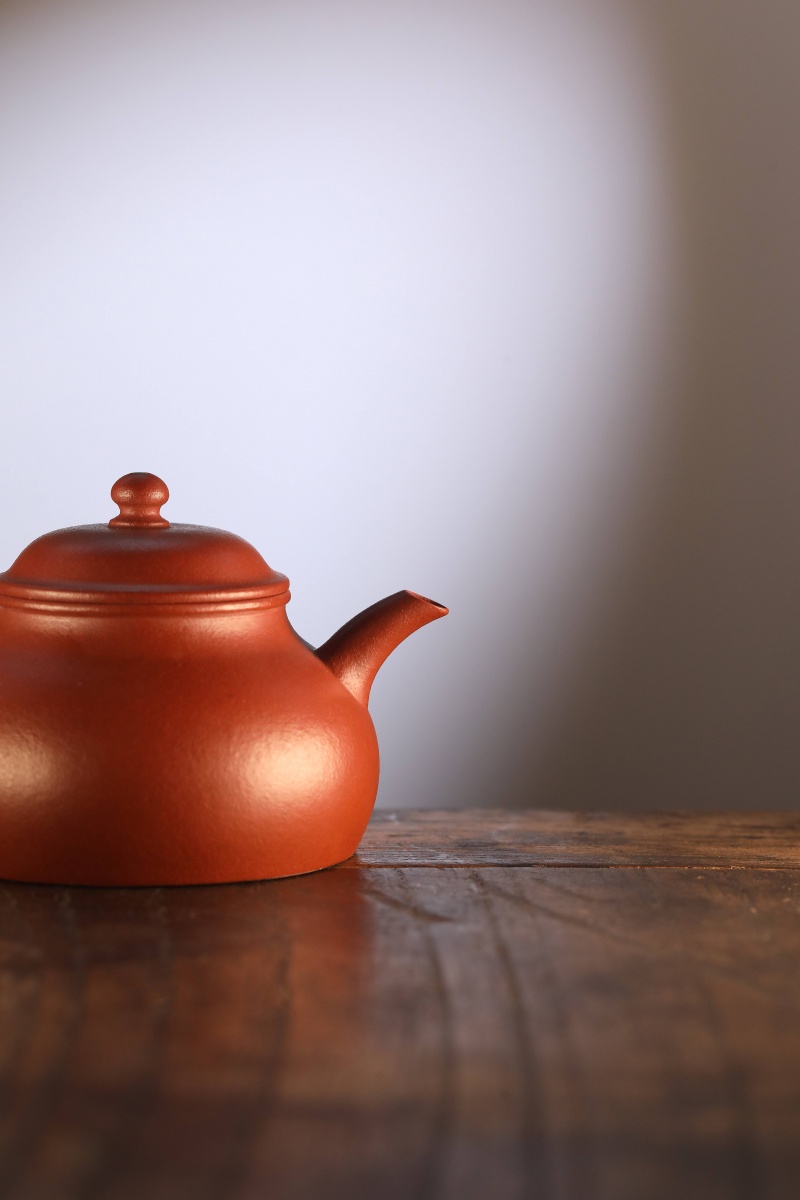 半月壶质朴无华,尽显光素器之典型美感,尤为茶人所喜爱。此壶全手工精制,设计挺秀稳重、端凝大方,比例恰到好处,线条清晰明朗。圆肚鼓腹,壶嘴坚挺有力,出水顺畅,壶把与壶钮造型简约,与壶身相得益彰。采用九瀚特殊烧成,肌理颗粒若隐若现。韵味独特、风格别致,营造出对团圆的美好期盼。