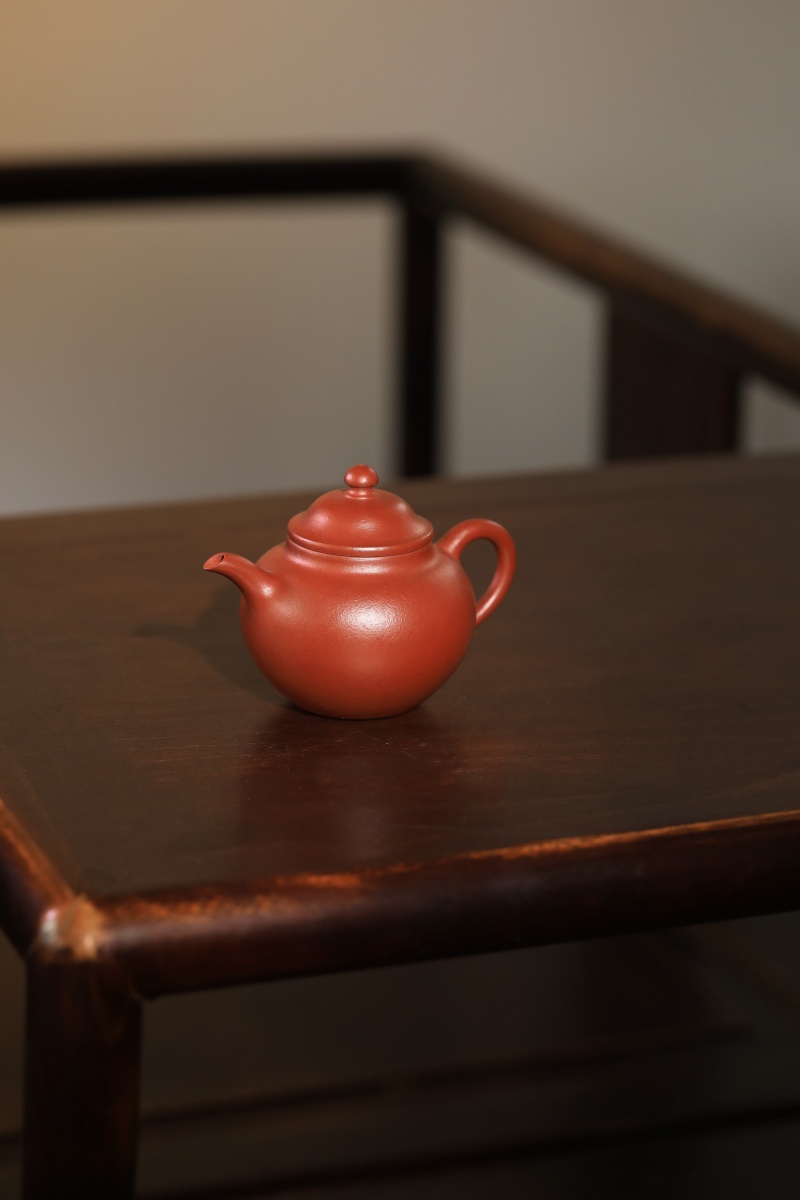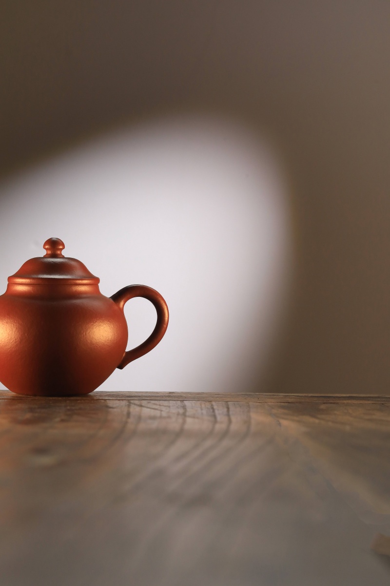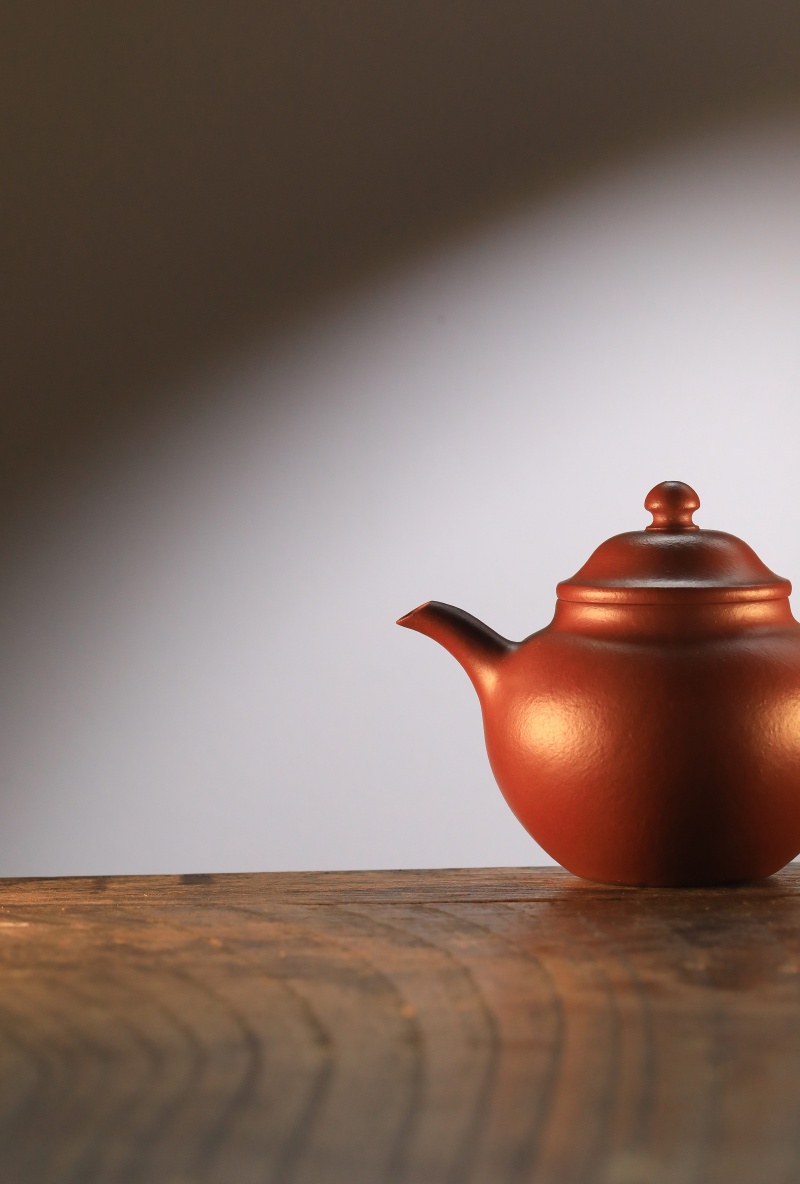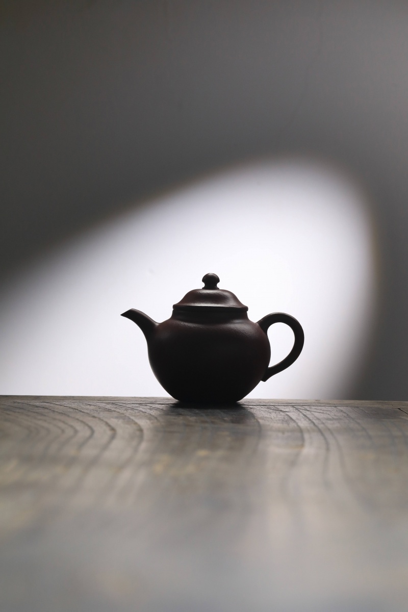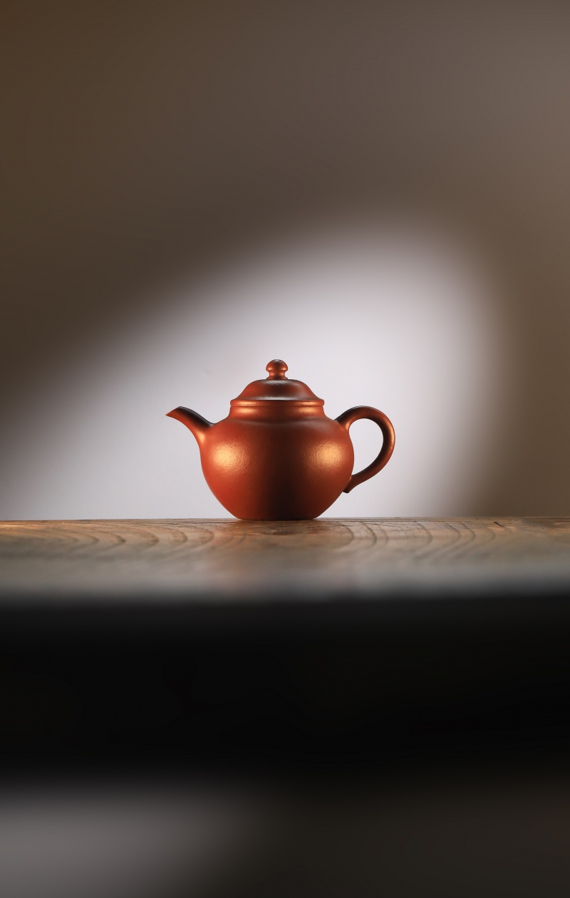 高莲子壶以端庄古朴、大气稳重之姿呈现,因形似莲子而得名。全手工制作,其笠帽盖与饱满身形相融,珠钮小巧精致,弯流壶嘴自壶身自然胥出,出水丝滑,收水利落,耳形把持握舒适有力。采用九瀚特殊烧成,肌理颗粒感明显,古拙意趣十足。款式适配当代茶席,宜茶性佳,可供摹作分享。