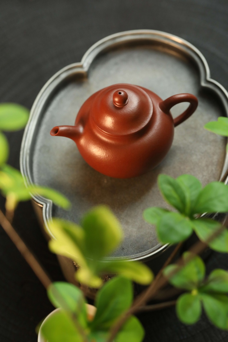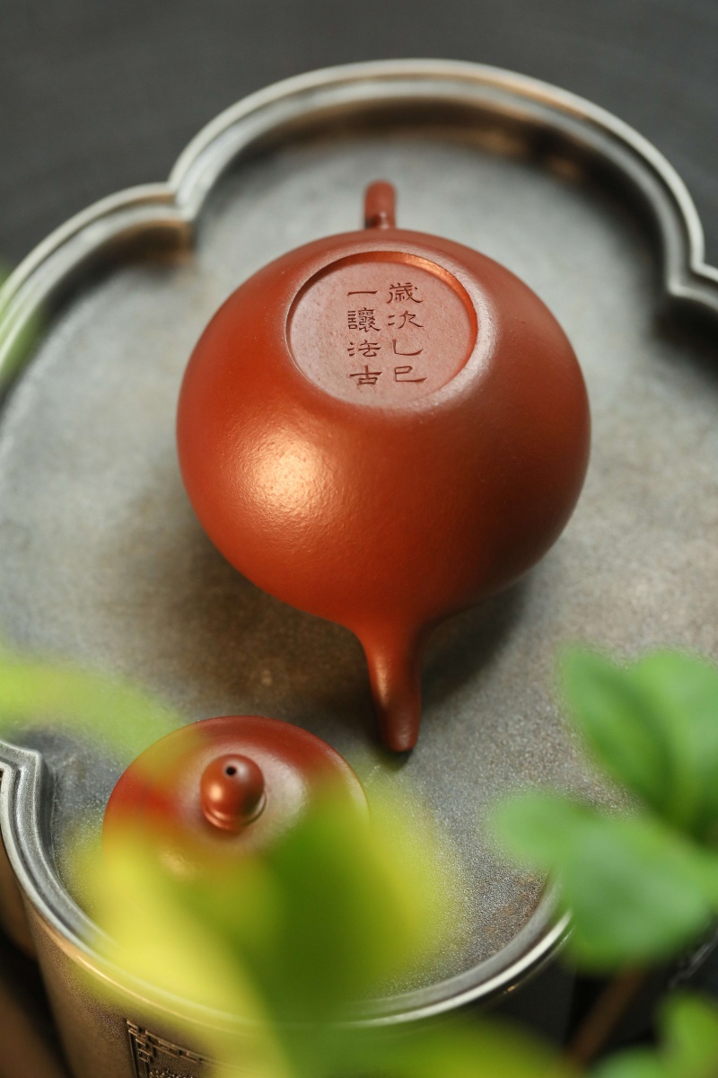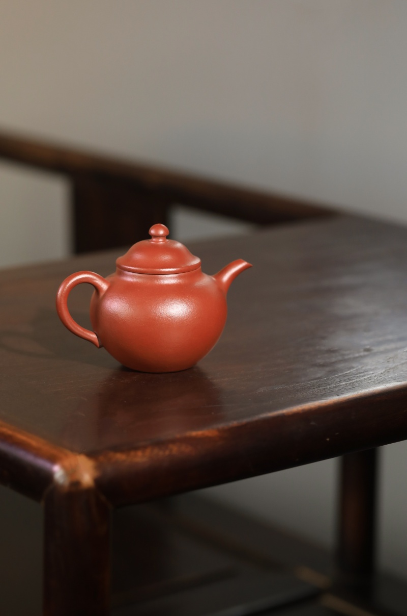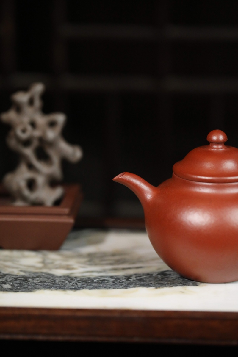 高莲子壶以端庄古朴、大气稳重之姿呈现,因形似莲子而得名。全手工制作,其笠帽盖与饱满身形相融,珠钮小巧精致,弯流壶嘴自壶身自然胥出,出水丝滑,收水利落,耳形把持握舒适有力。采用九瀚特殊烧成,肌理颗粒感明显,古拙意趣十足。款式适配当代茶席,宜茶性佳,可供摹作分享。