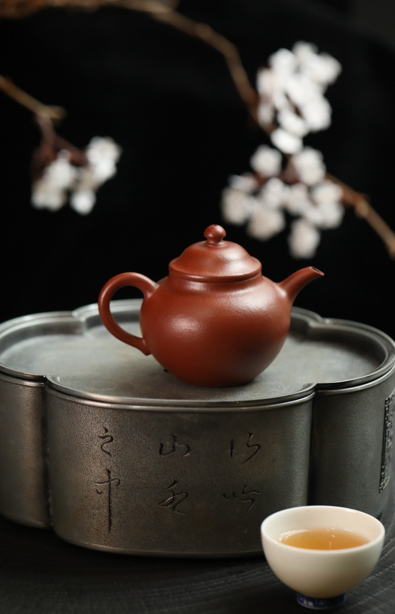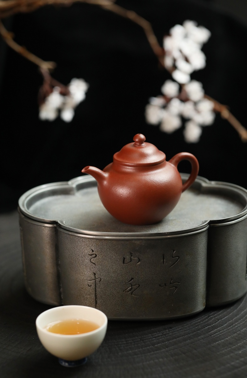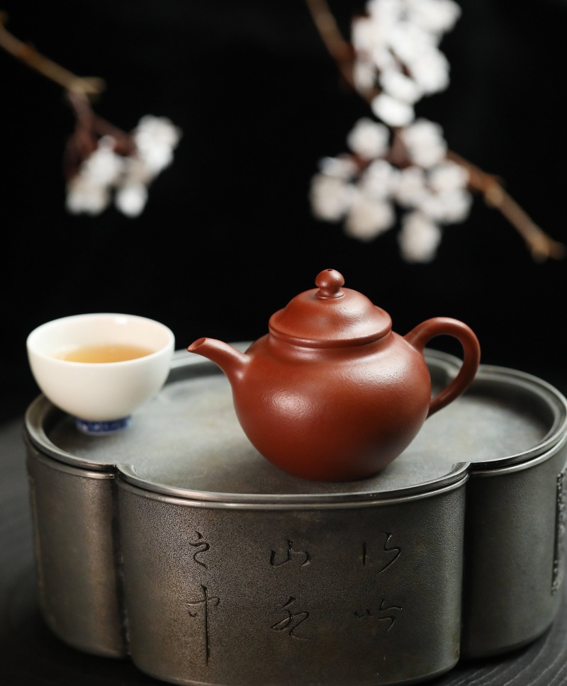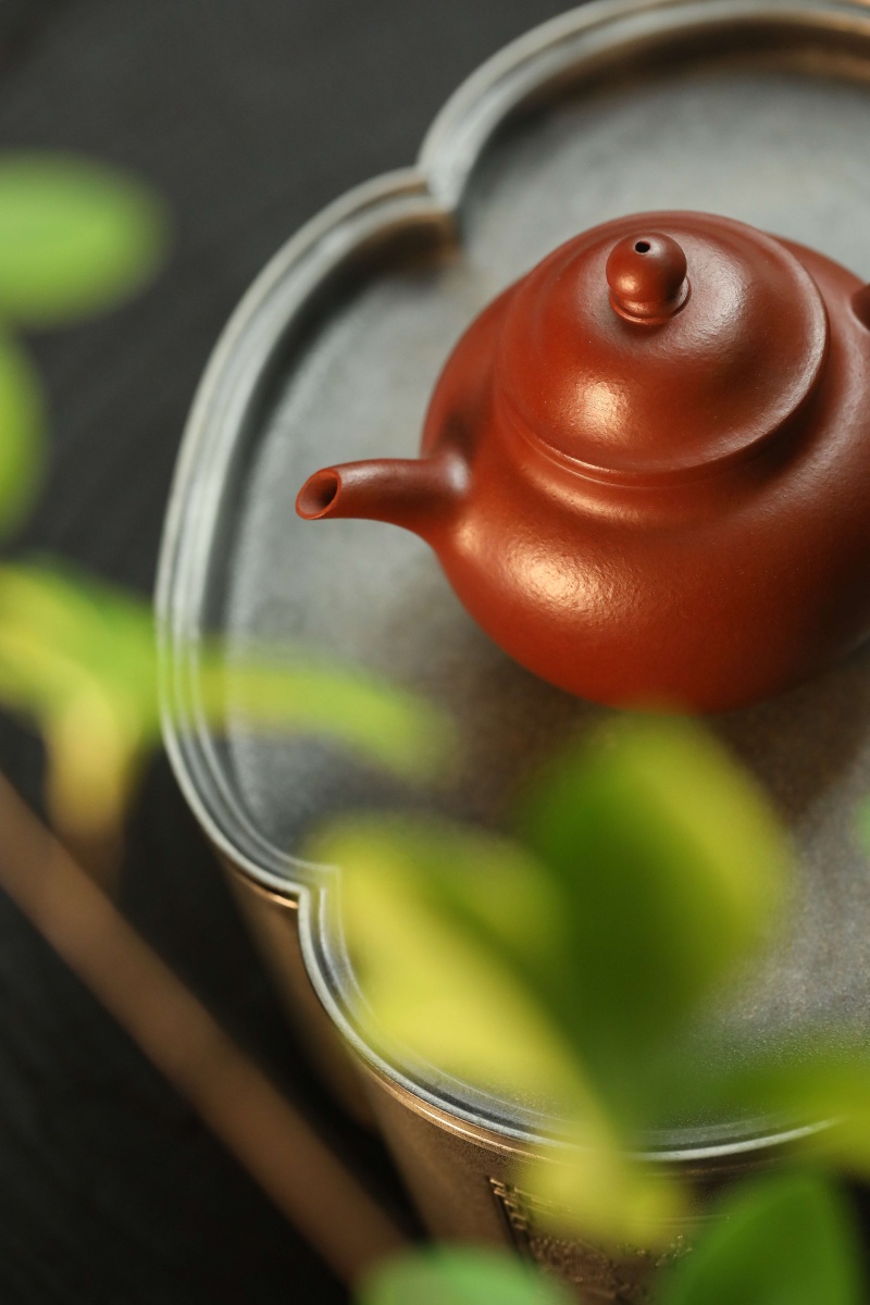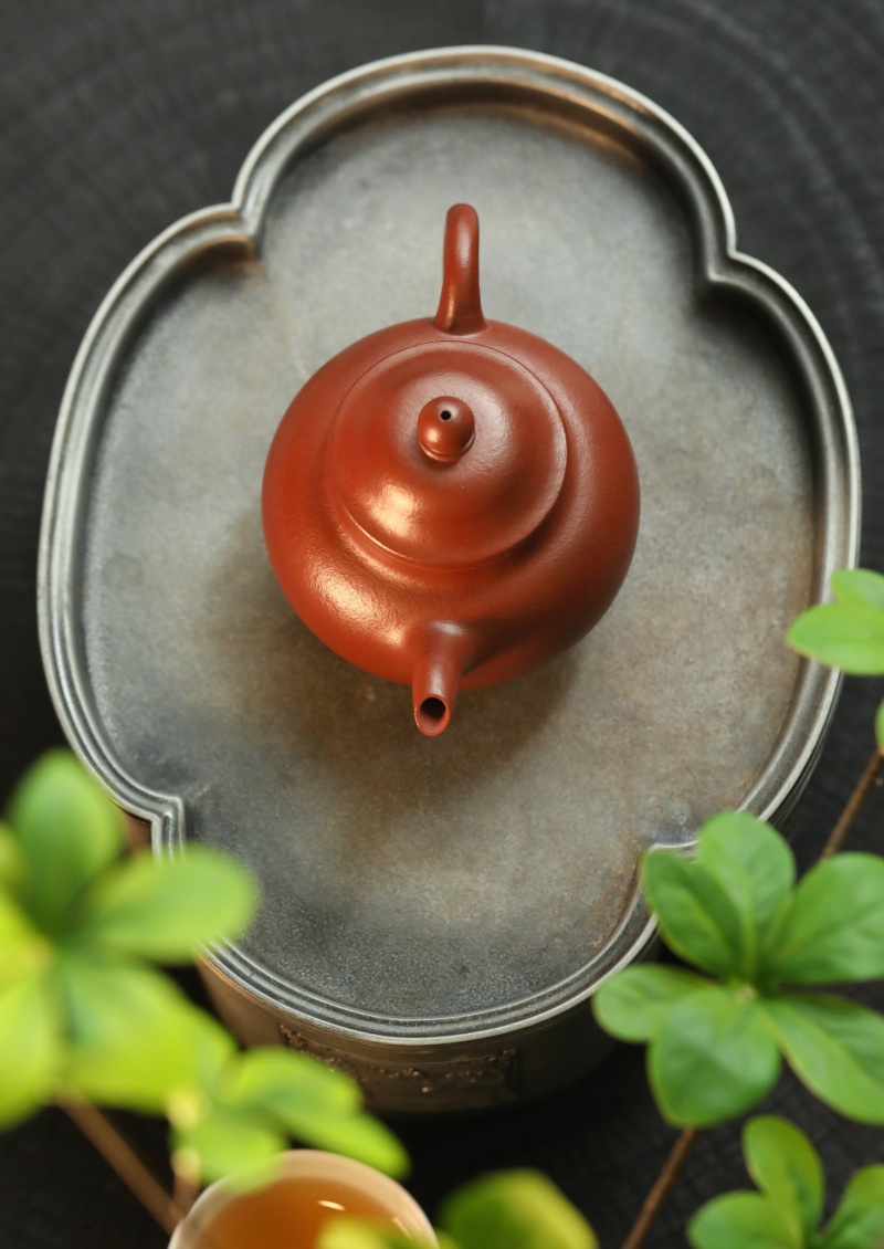 高莲子壶以端庄古朴、大气稳重之姿呈现,因形似莲子而得名。全手工制作,其笠帽盖与饱满身形相融,珠钮小巧精致,弯流壶嘴自壶身自然胥出,出水丝滑,收水利落,耳形把持握舒适有力。采用九瀚特殊烧成,肌理颗粒感明显,古拙意趣十足。款式适配当代茶席,宜茶性佳,可供摹作分享。