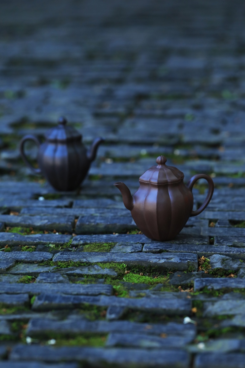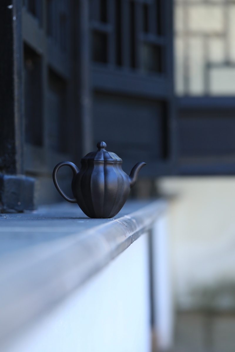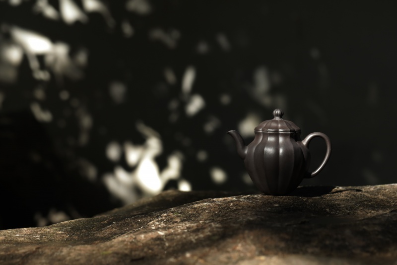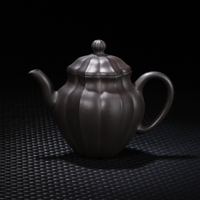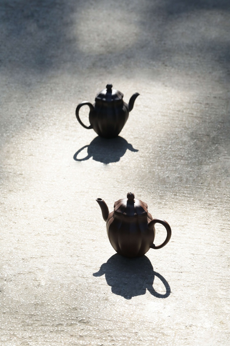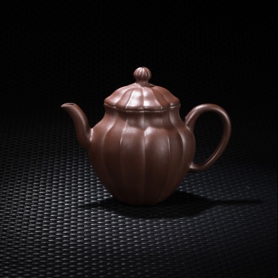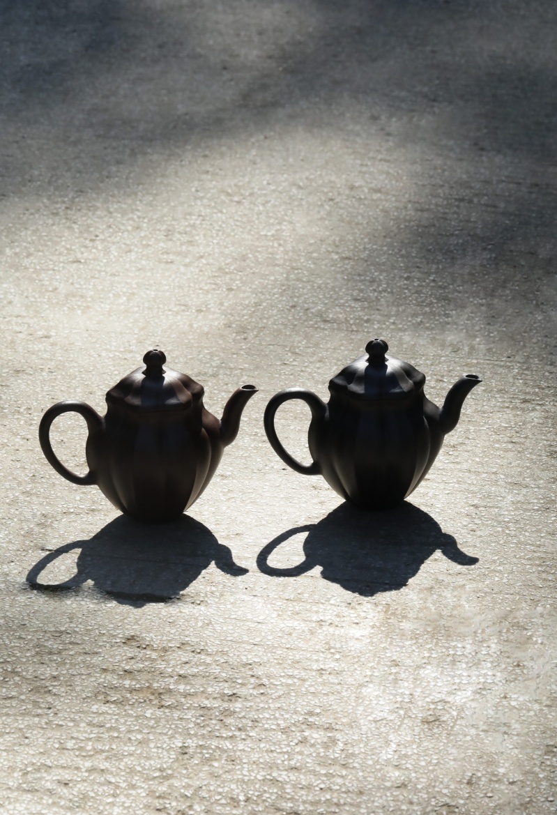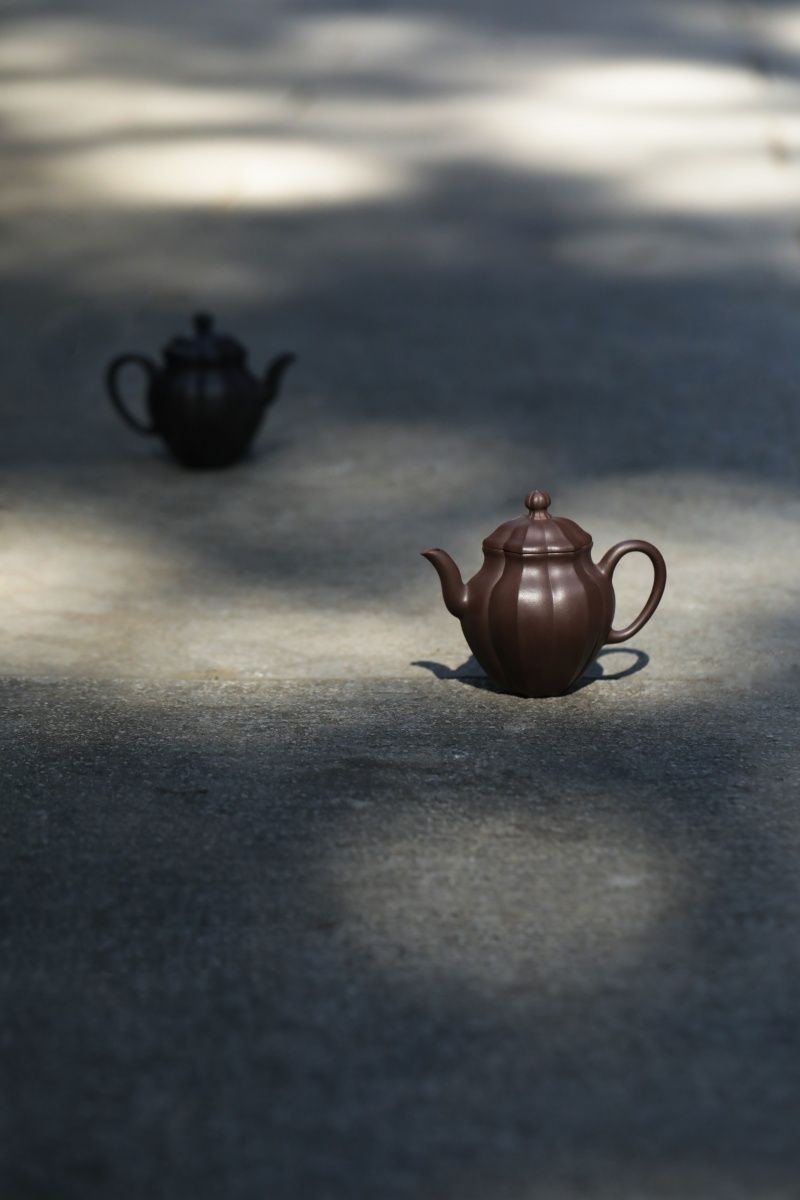 水仙宫灯二式通体呈水仙瓣式,将筋纹与块面巧妙结合,生动呈现出水仙花挺拔且富有生机的姿态。花瓣勾勒细腻,筋纹阴阳交错。整体秀美非凡,柔美中棱角分明,又不失圆润流畅。流把设计纤细灵动,壶底设计巧妙,一点收缩,将全壶筋纹精妙汇聚于壶底中心,其出水流畅,特为事茶断水收水更佳。